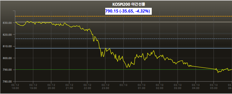 - MSCI Çѱ¹Áö¼ö ETF: $123.50 (-9.35, -7.04%) - MSCI À̸Ó¡Áö¼ö ETF: $56.95 (-1.88, -3.20%) - KRX KOSPI 200: 790.15p (-35.65p, -4.07%) - NDF ȯÀ²(1°³¿ù¹°): 1,491.45¿ø / ÀüÀÏ ´ëºñ 2¿ø »ó½Â Ãâ¹ß ¿¹»ó - Çʶóµ¨ÇÇ¾Æ ¹ÝµµÃ¼: 7,643.17 (-271.39, -3.43%)